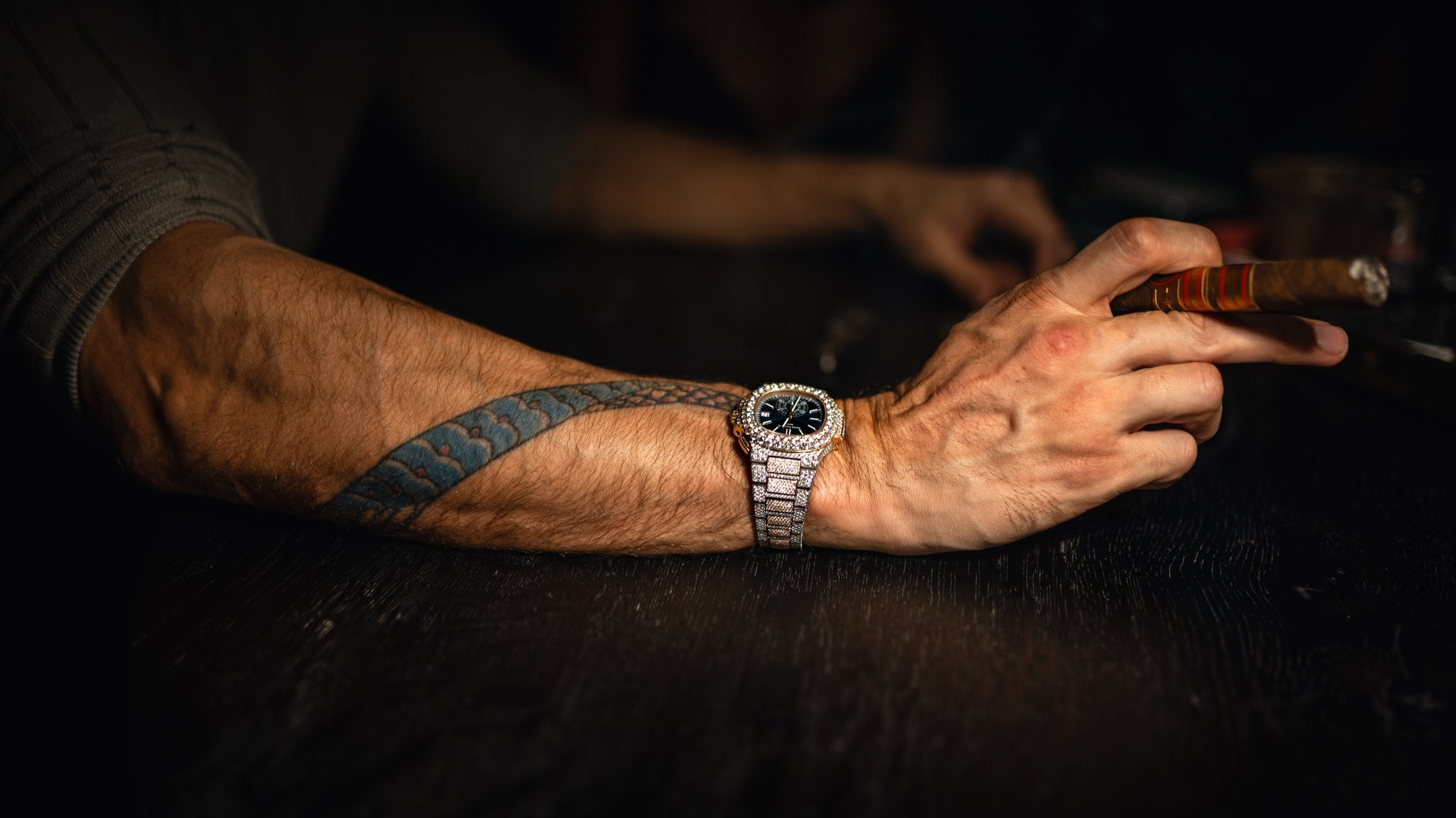 Luxury Black Watch with Stone-Studded Black Dial & Original Rolex Box