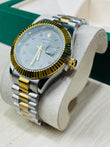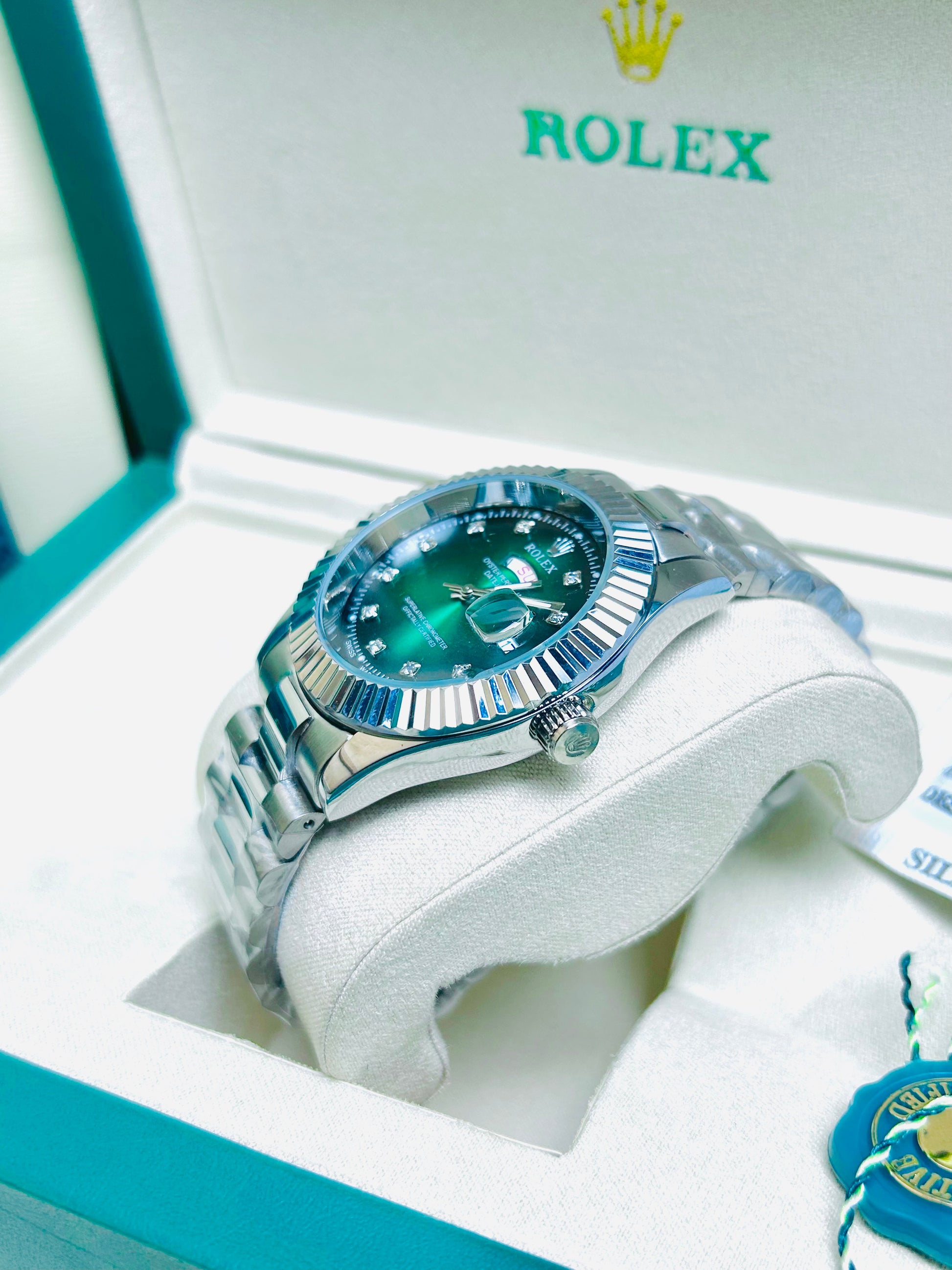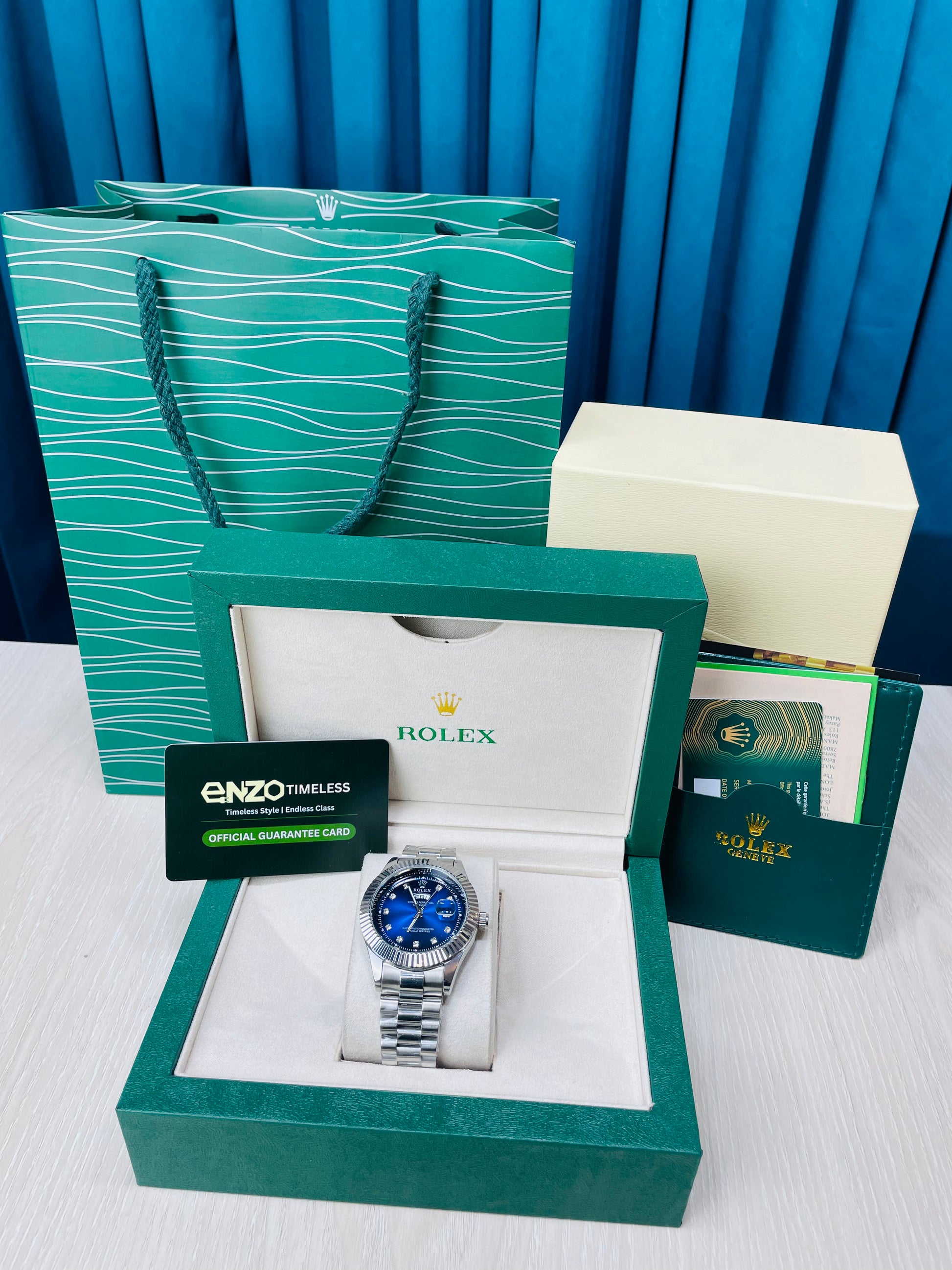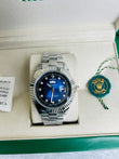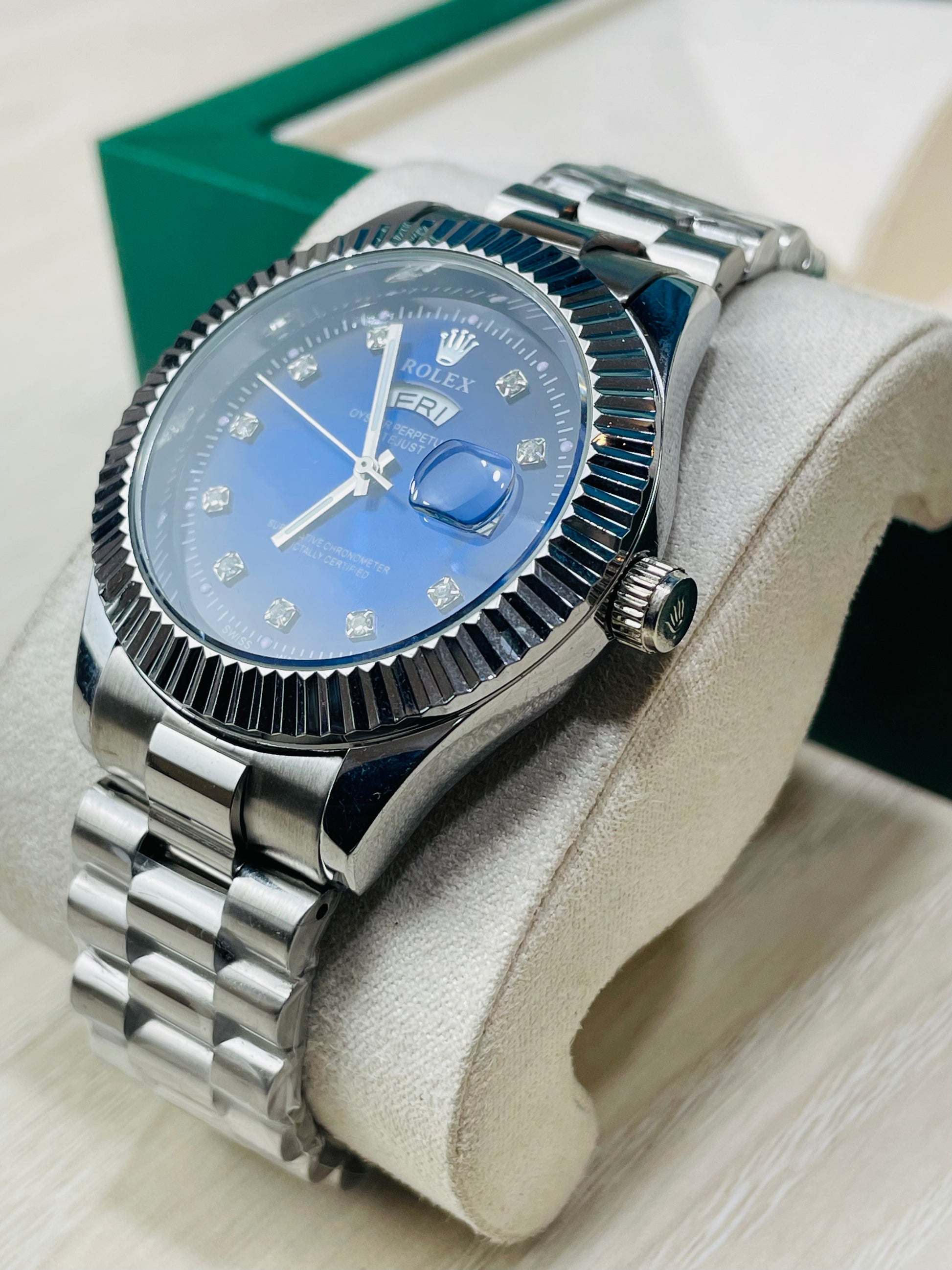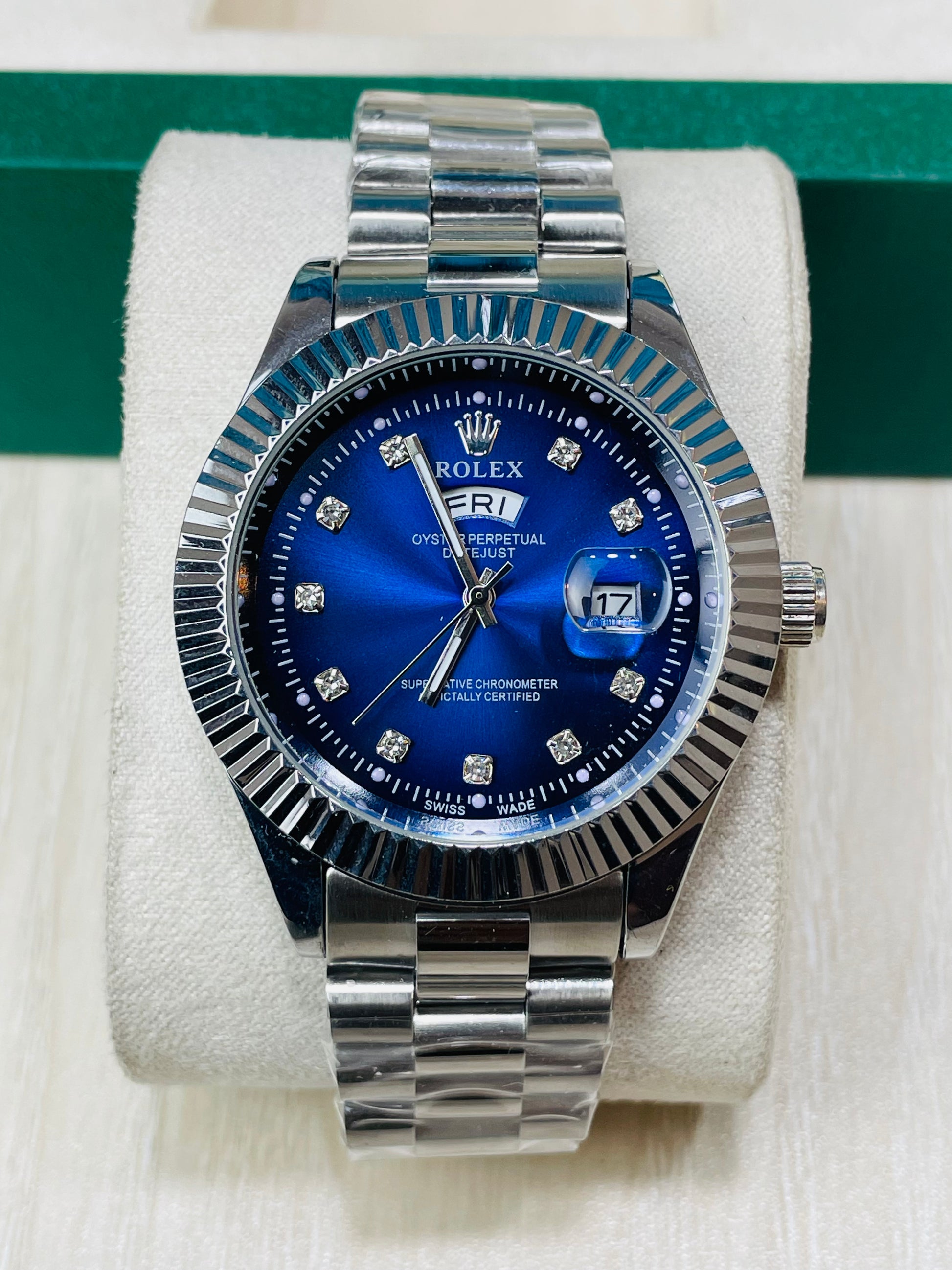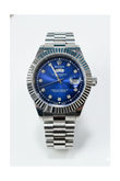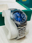 Blue Dial Luxury Watch with Silver Chain & Original Rolex Box