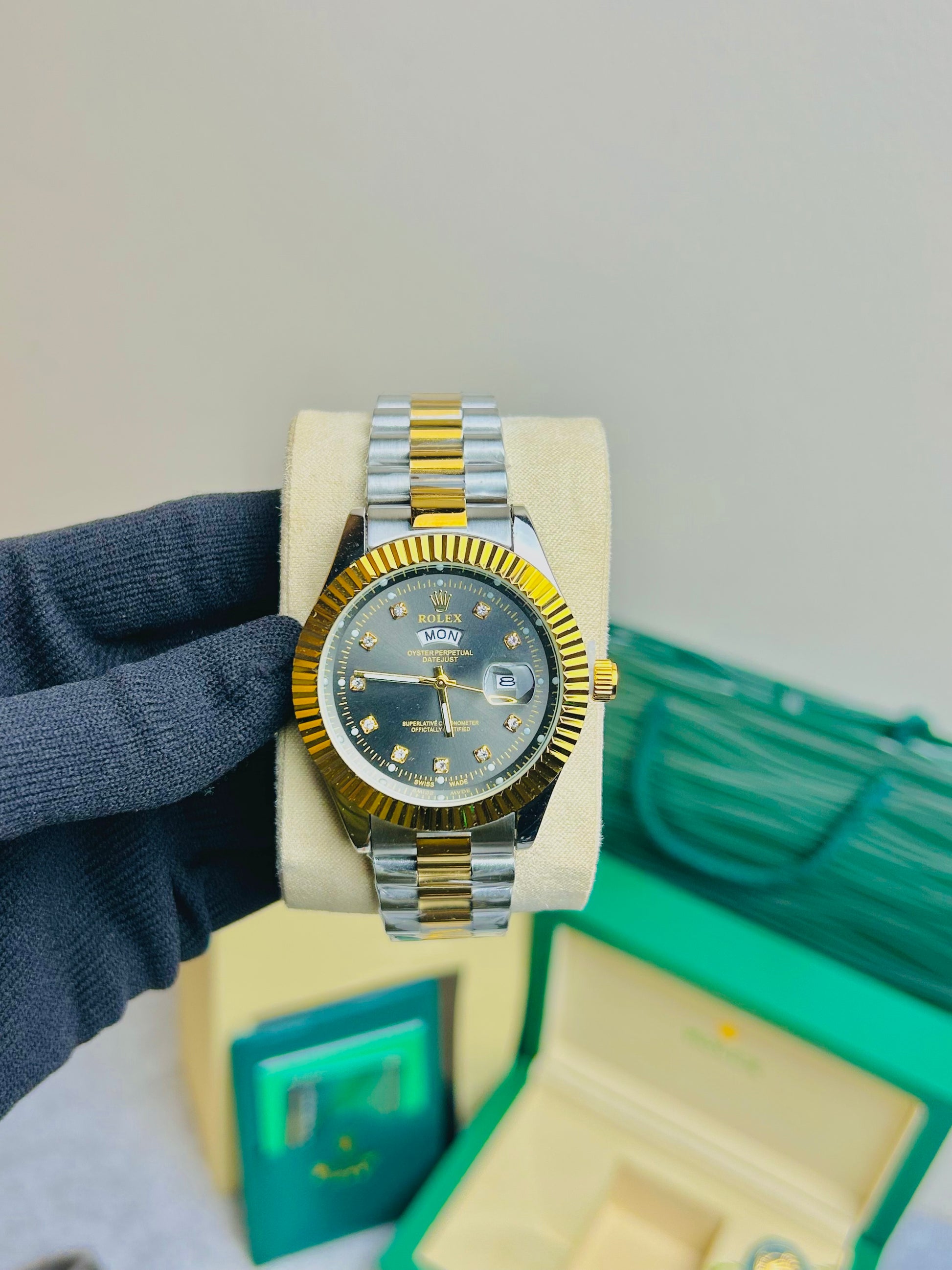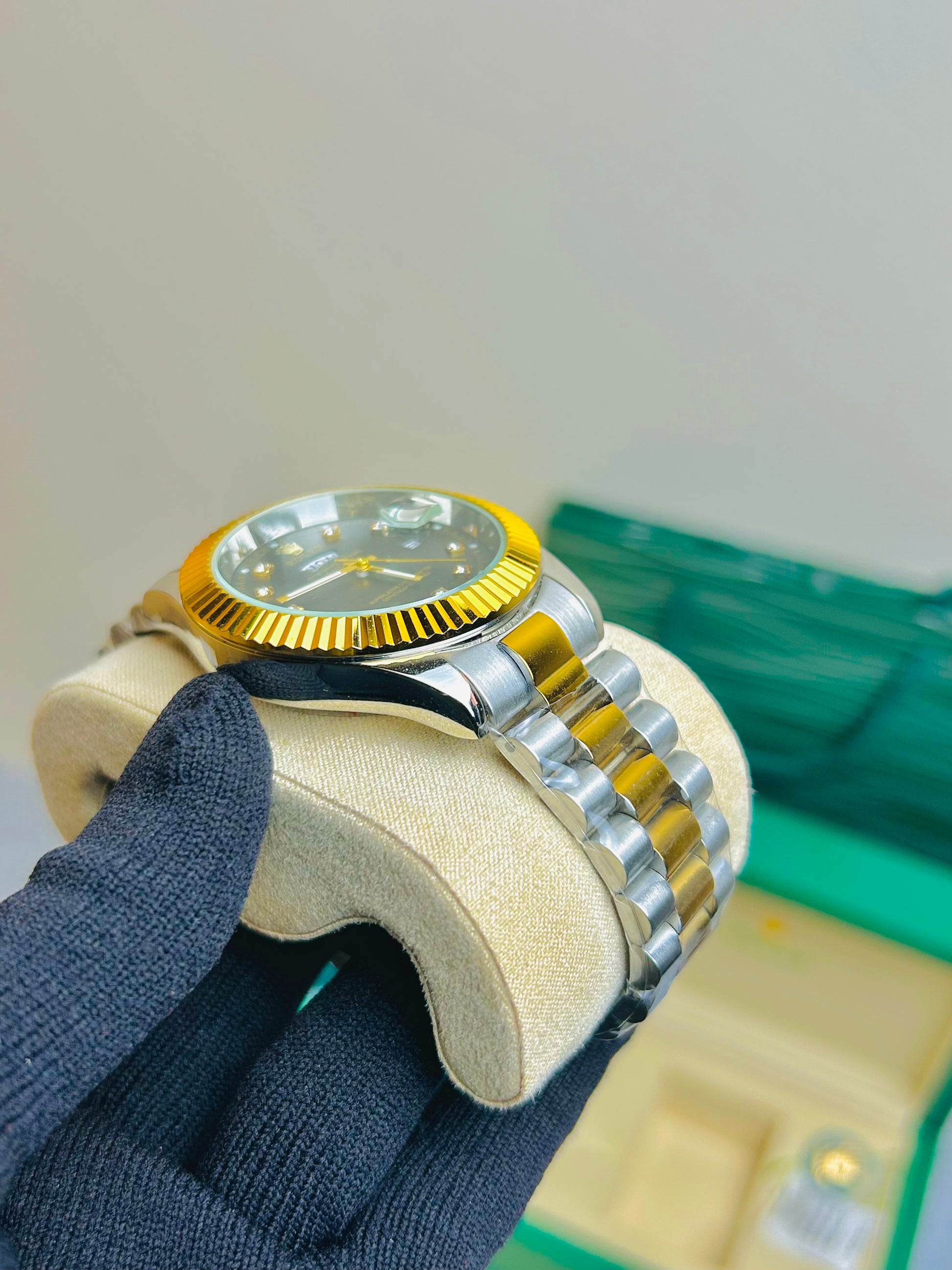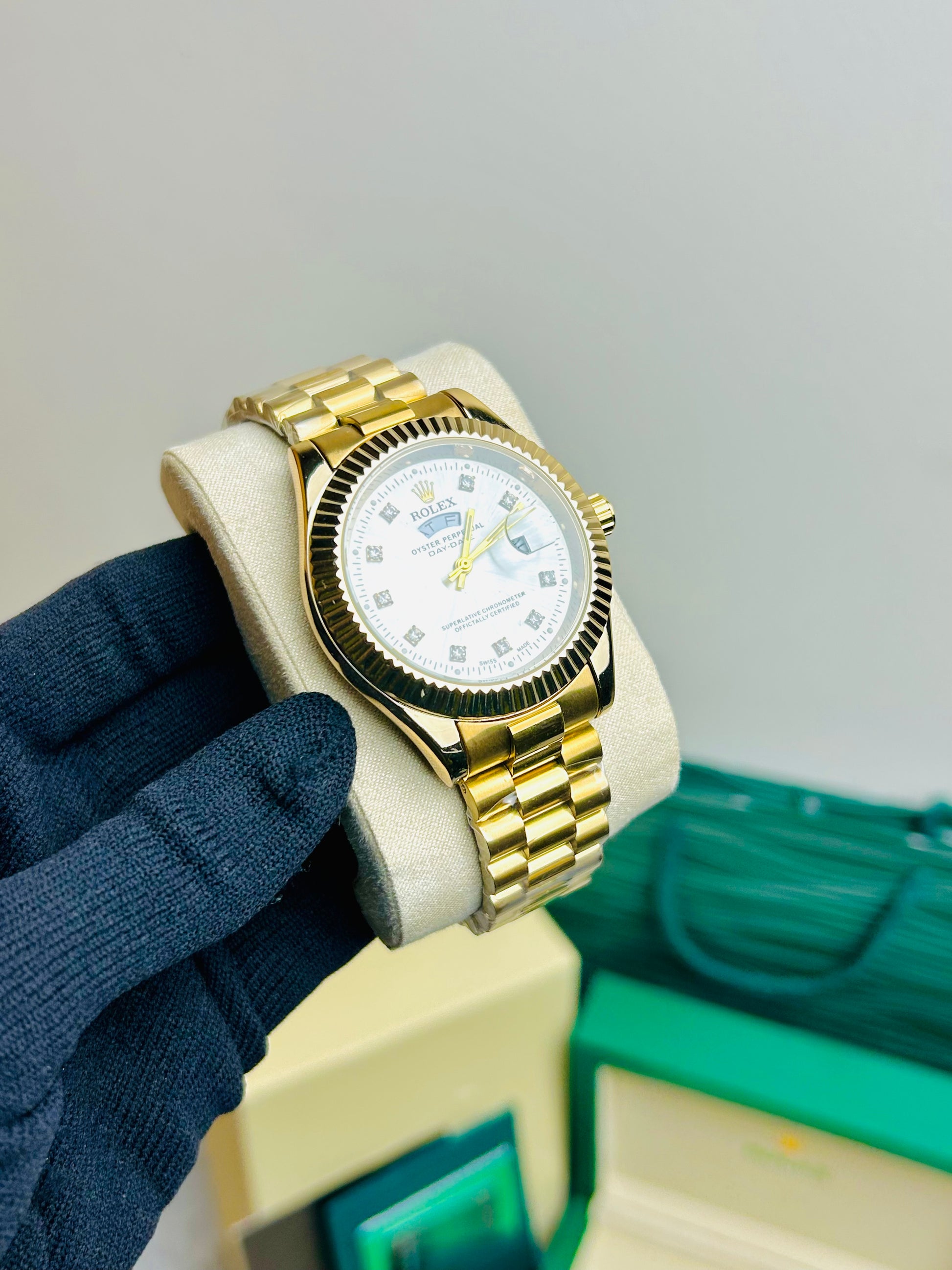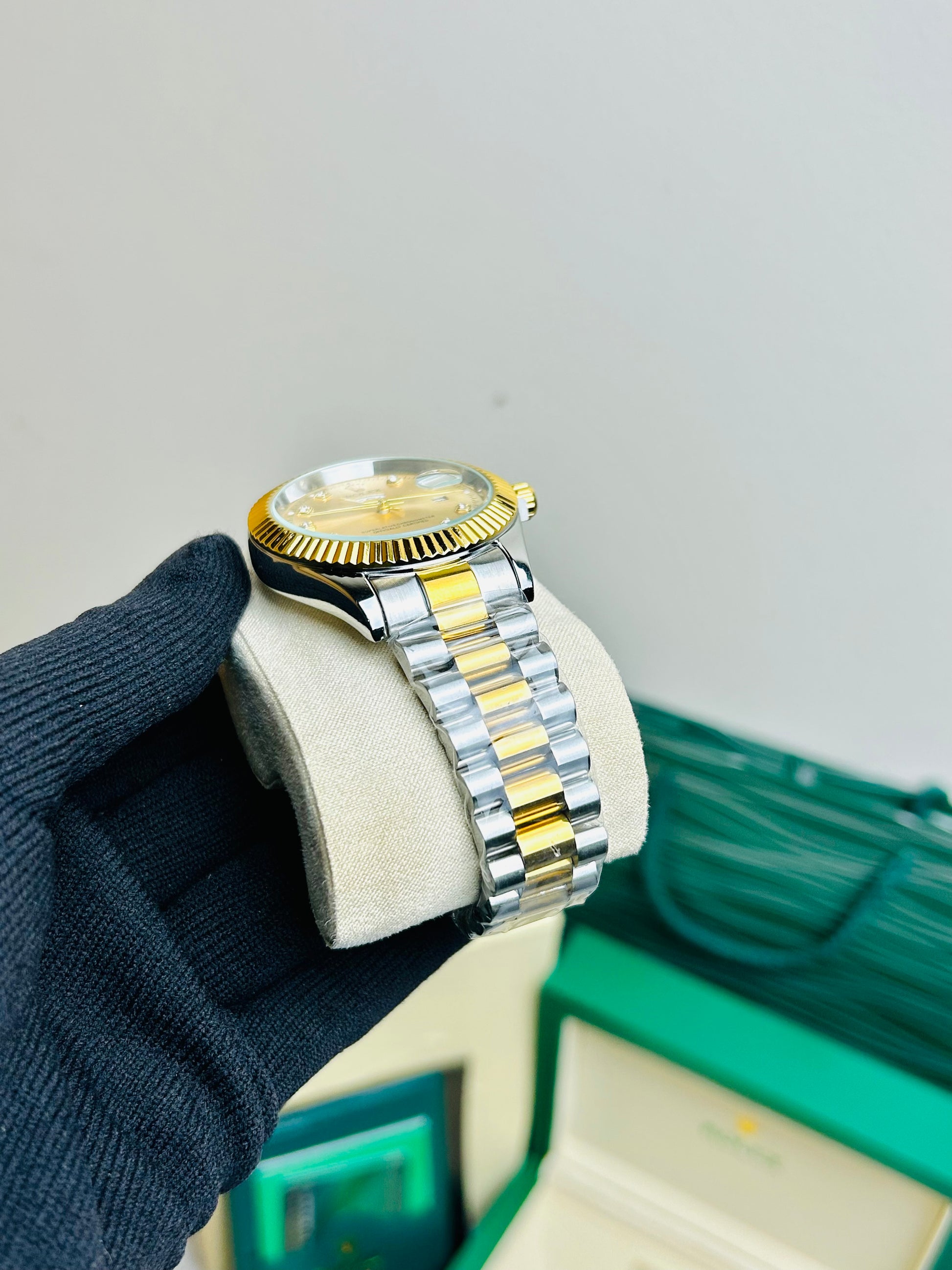 Blue Dial Luxury Watch with Silver Chain & Original Rolex Box