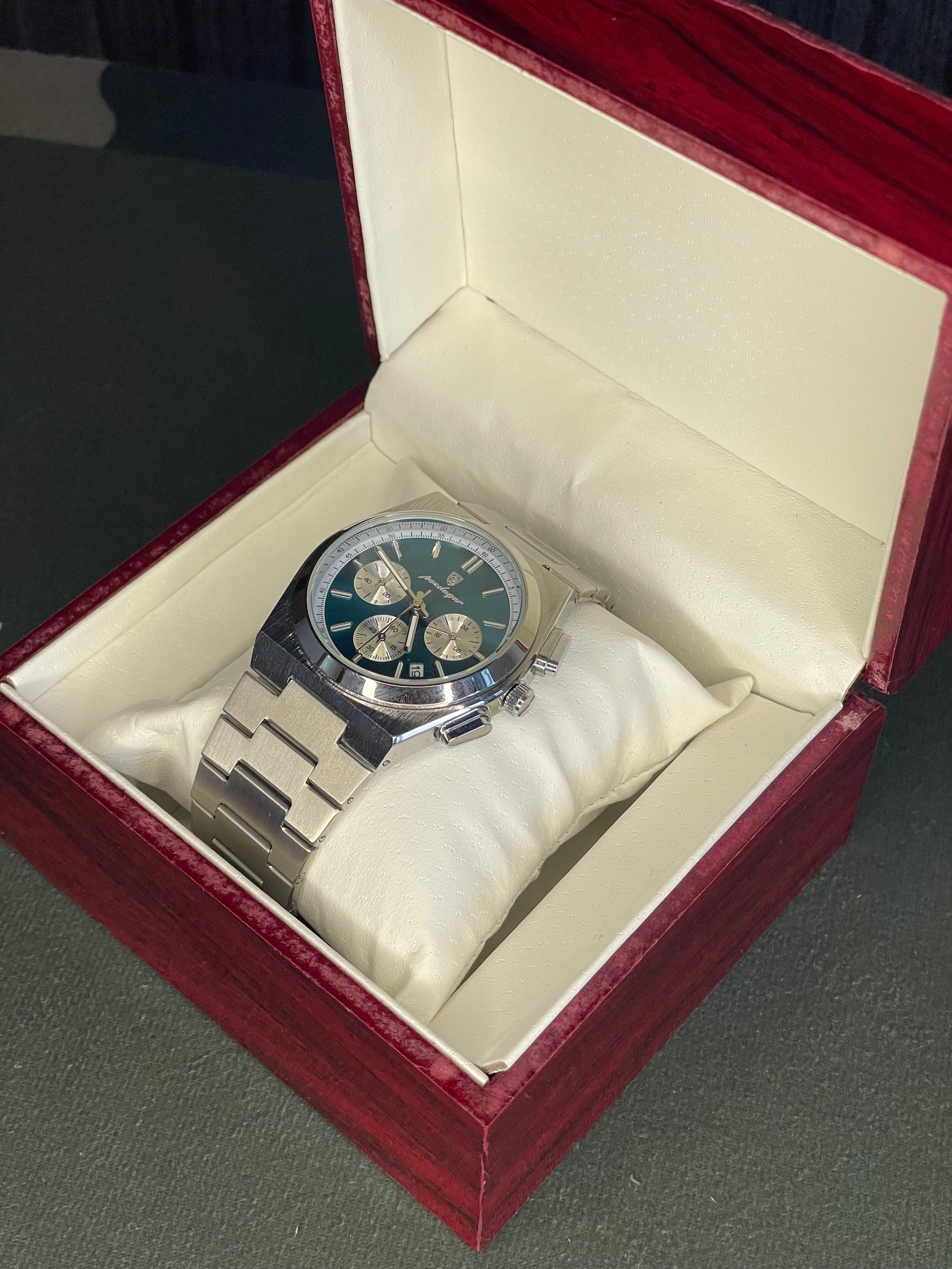 Crafted with precision, this luxury men’s watch combines durability with style.