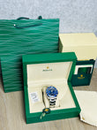 | Dial: | Blue dial with white luminous baton and original Rolex factory diamond hour markers . Date calendar window at 3 o'clock aperture. |