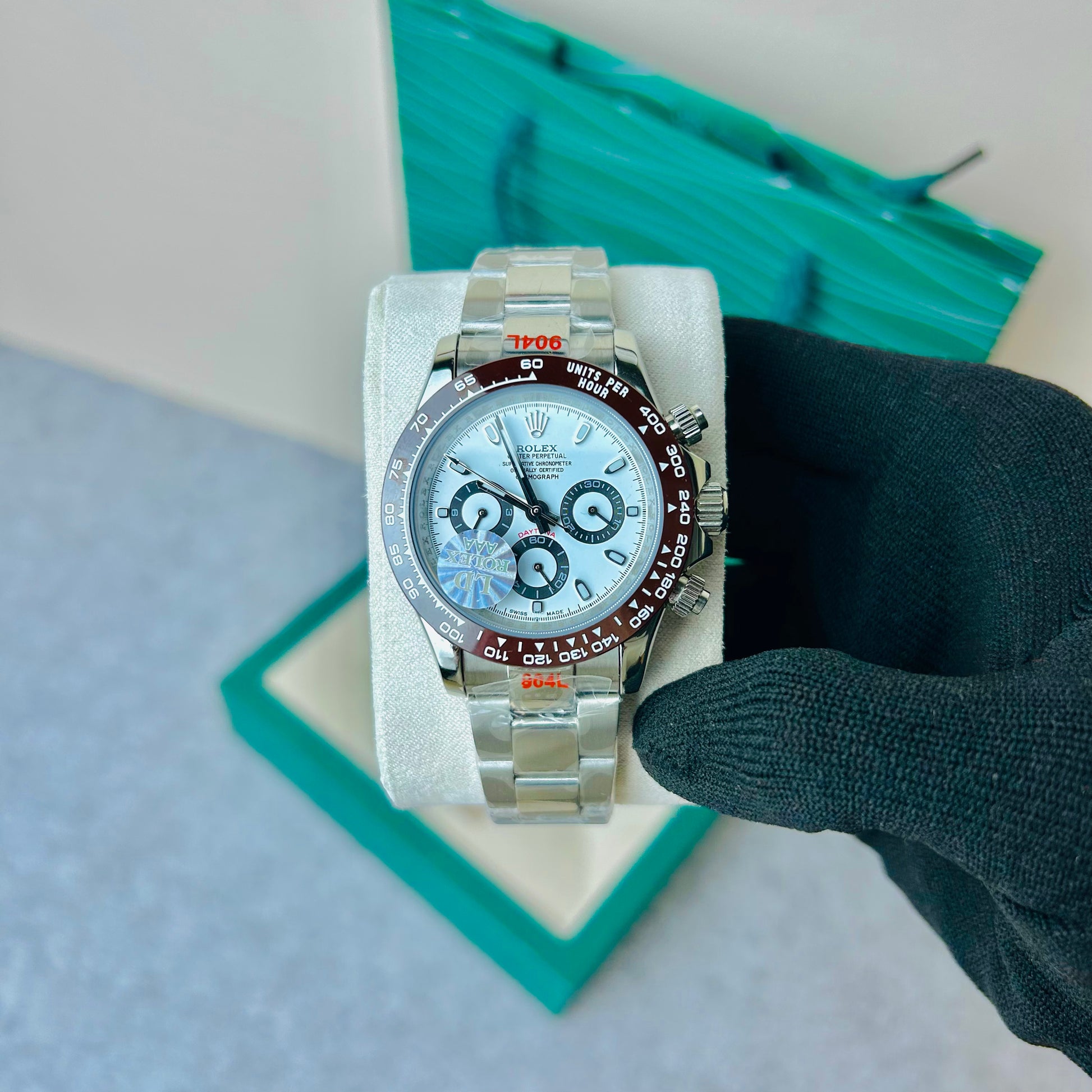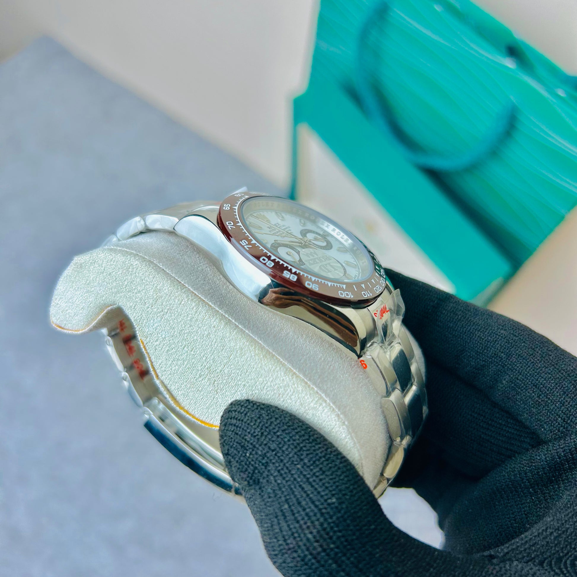 Stylish black ceramic bezel with an engraved tachymetric scale.