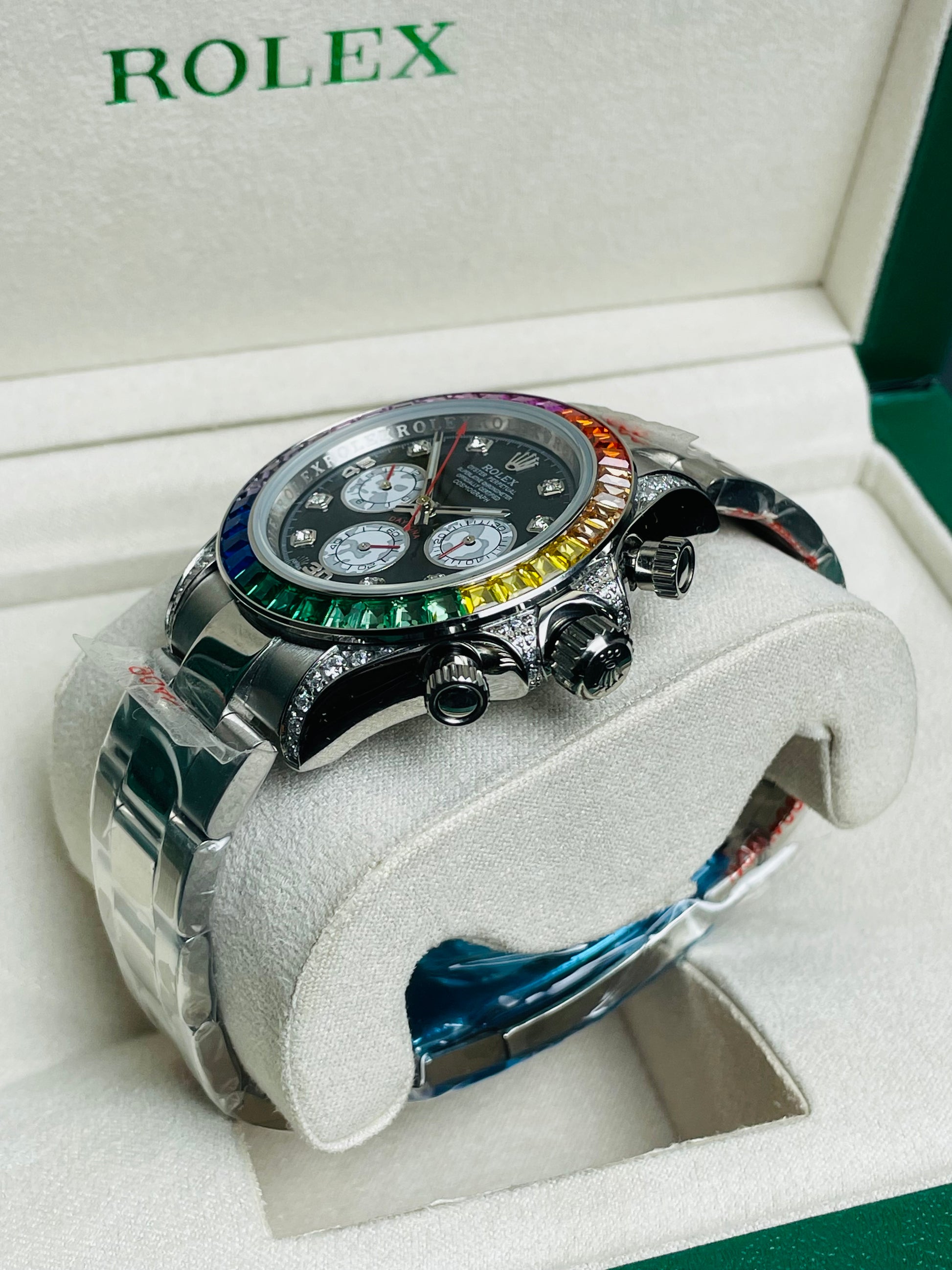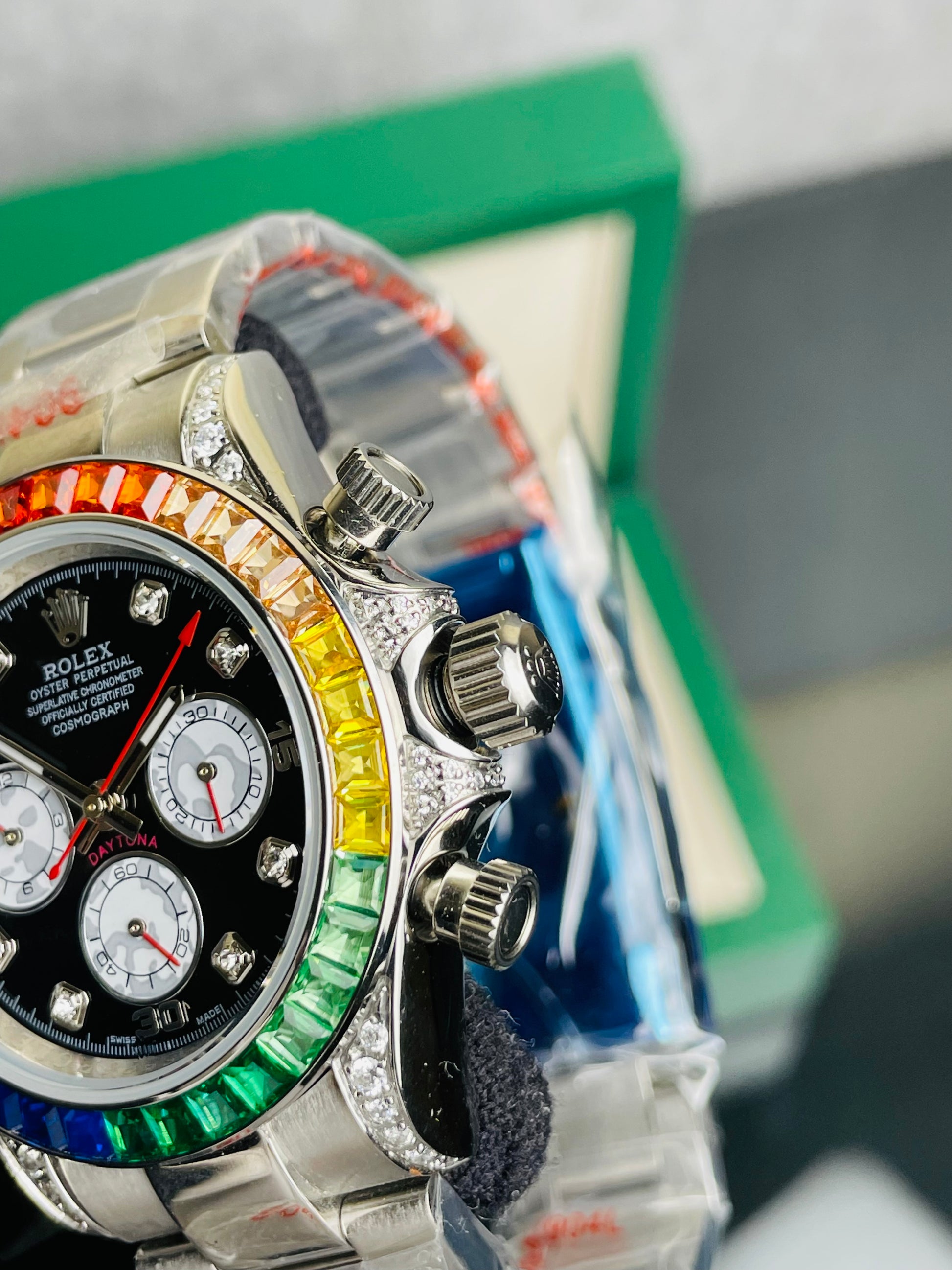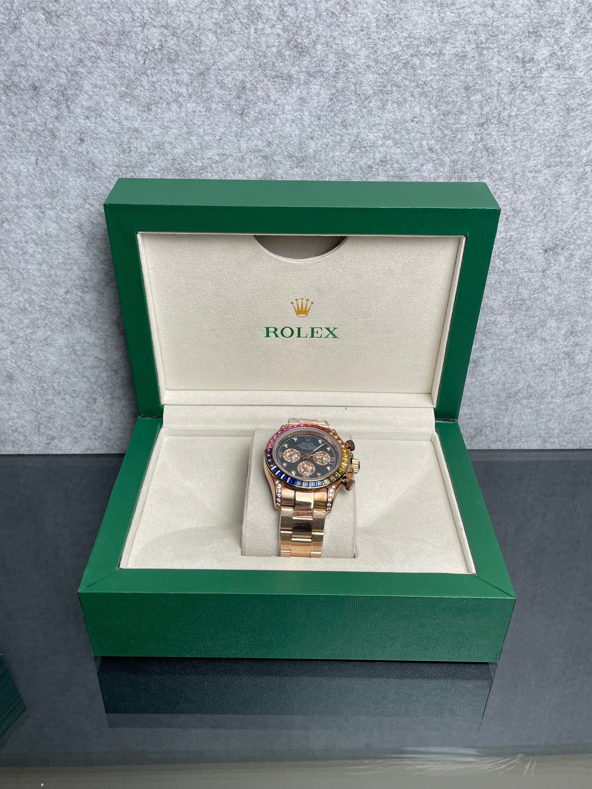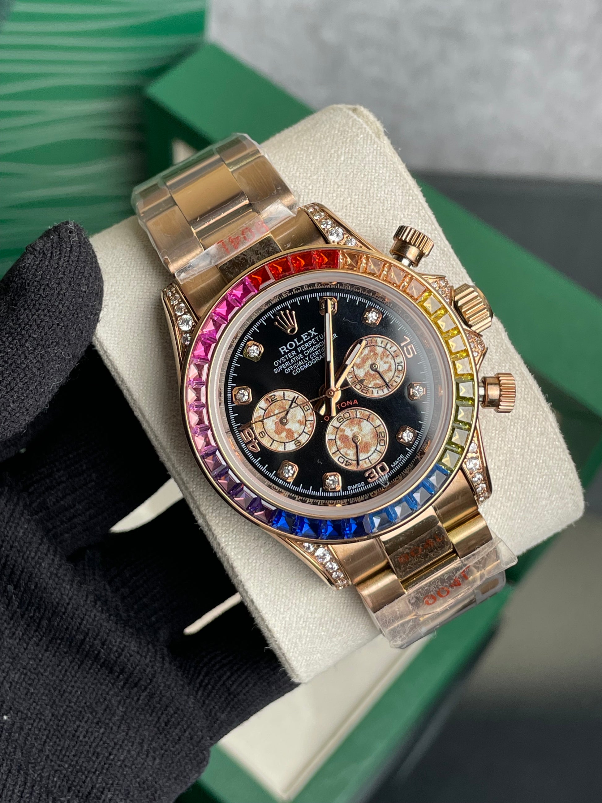 • Model: Rolex Cosmograph Daytona "Rainbow" ( Gold Colour Finish).