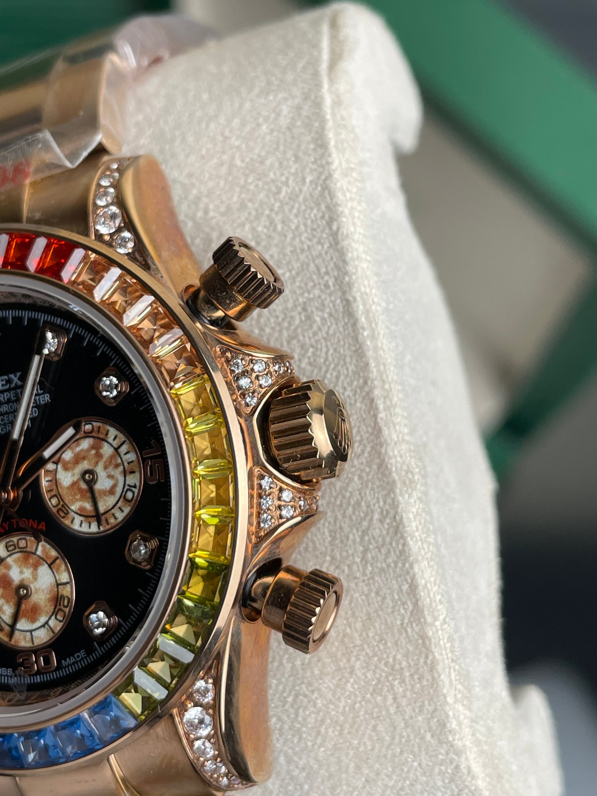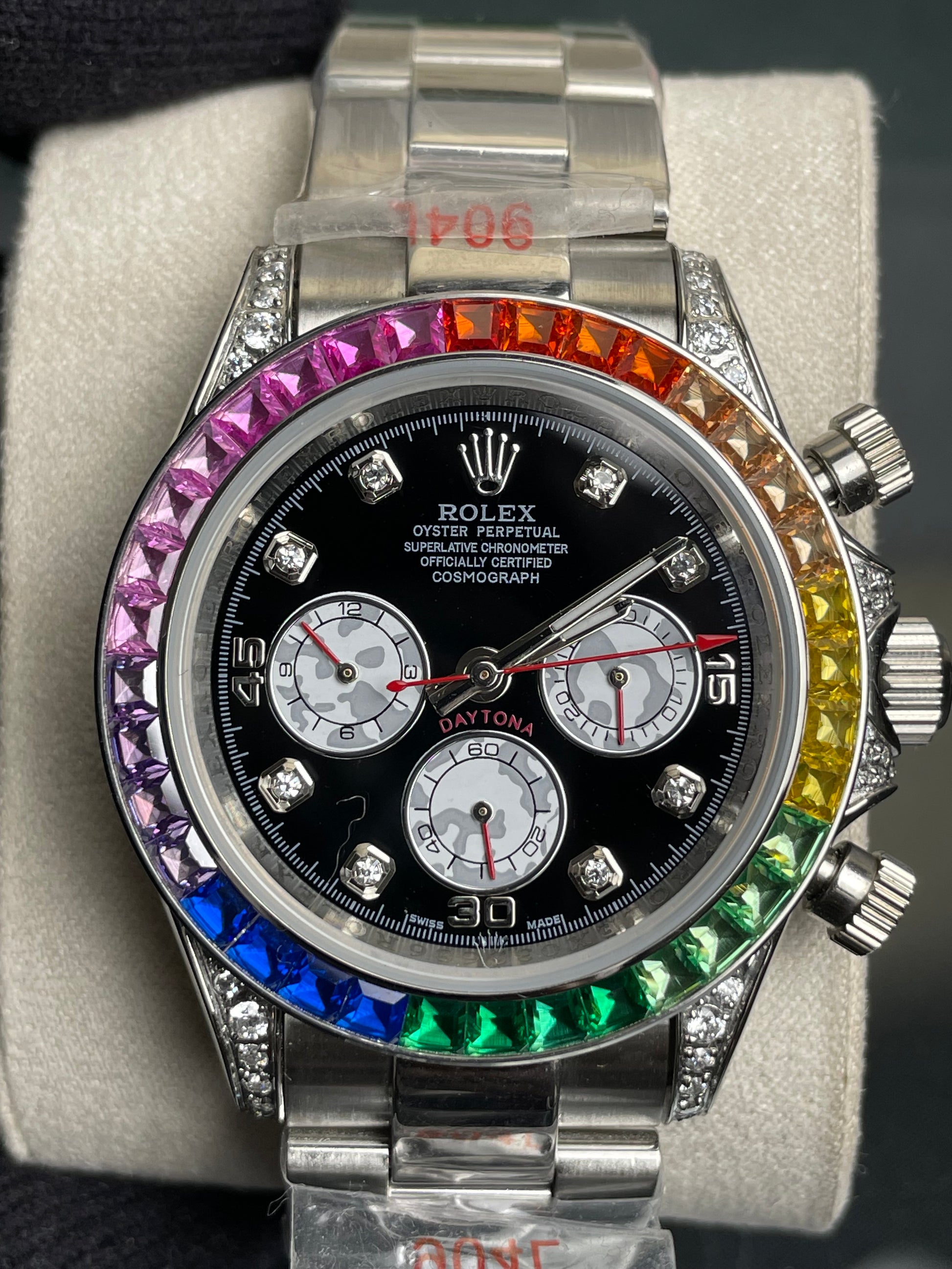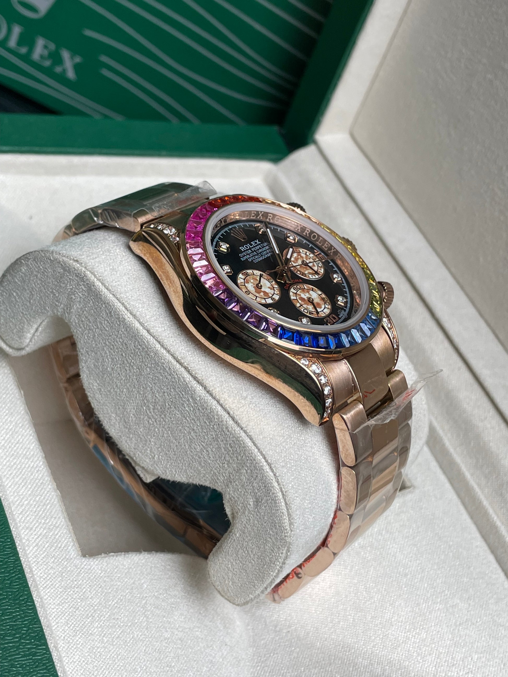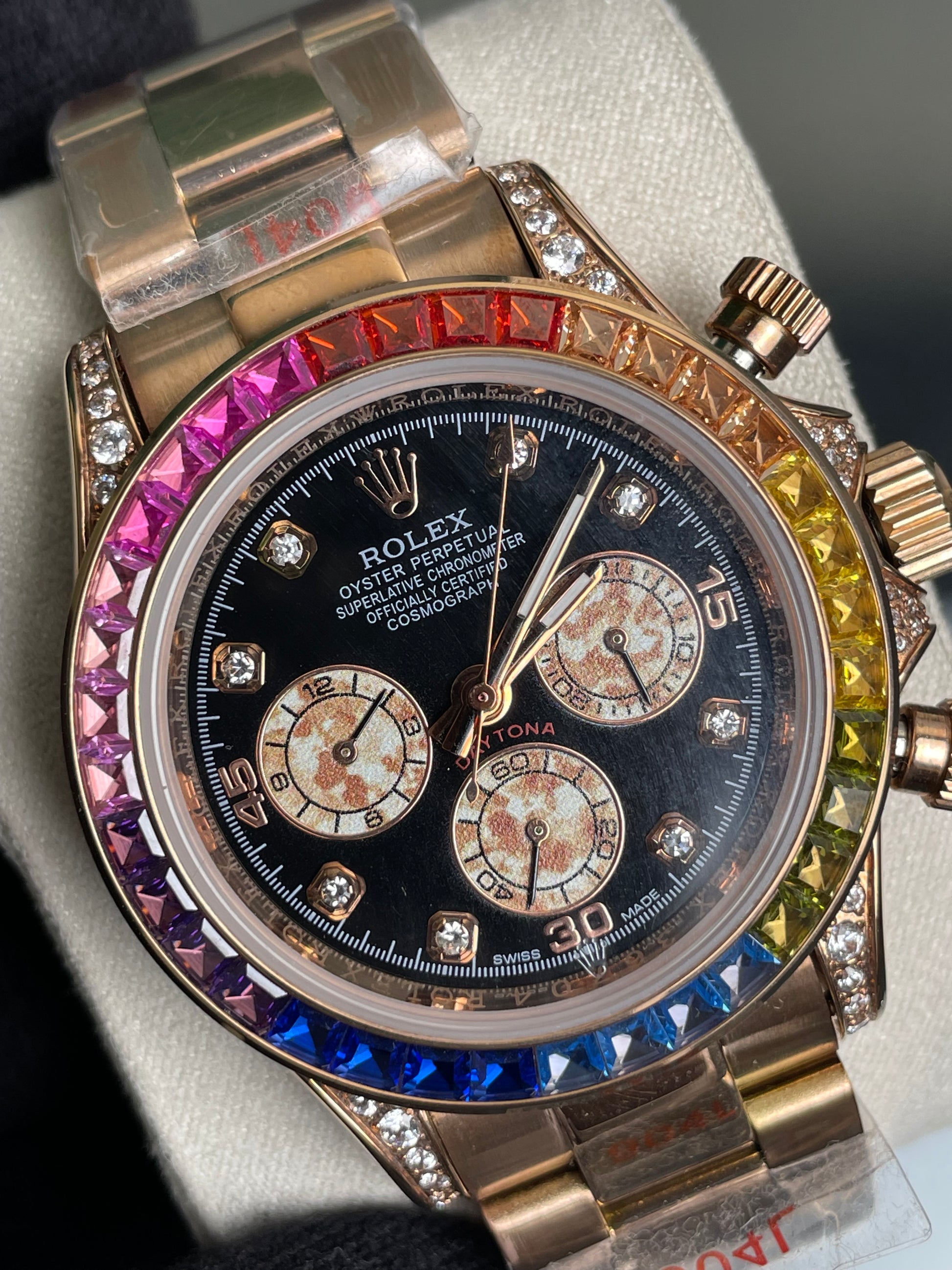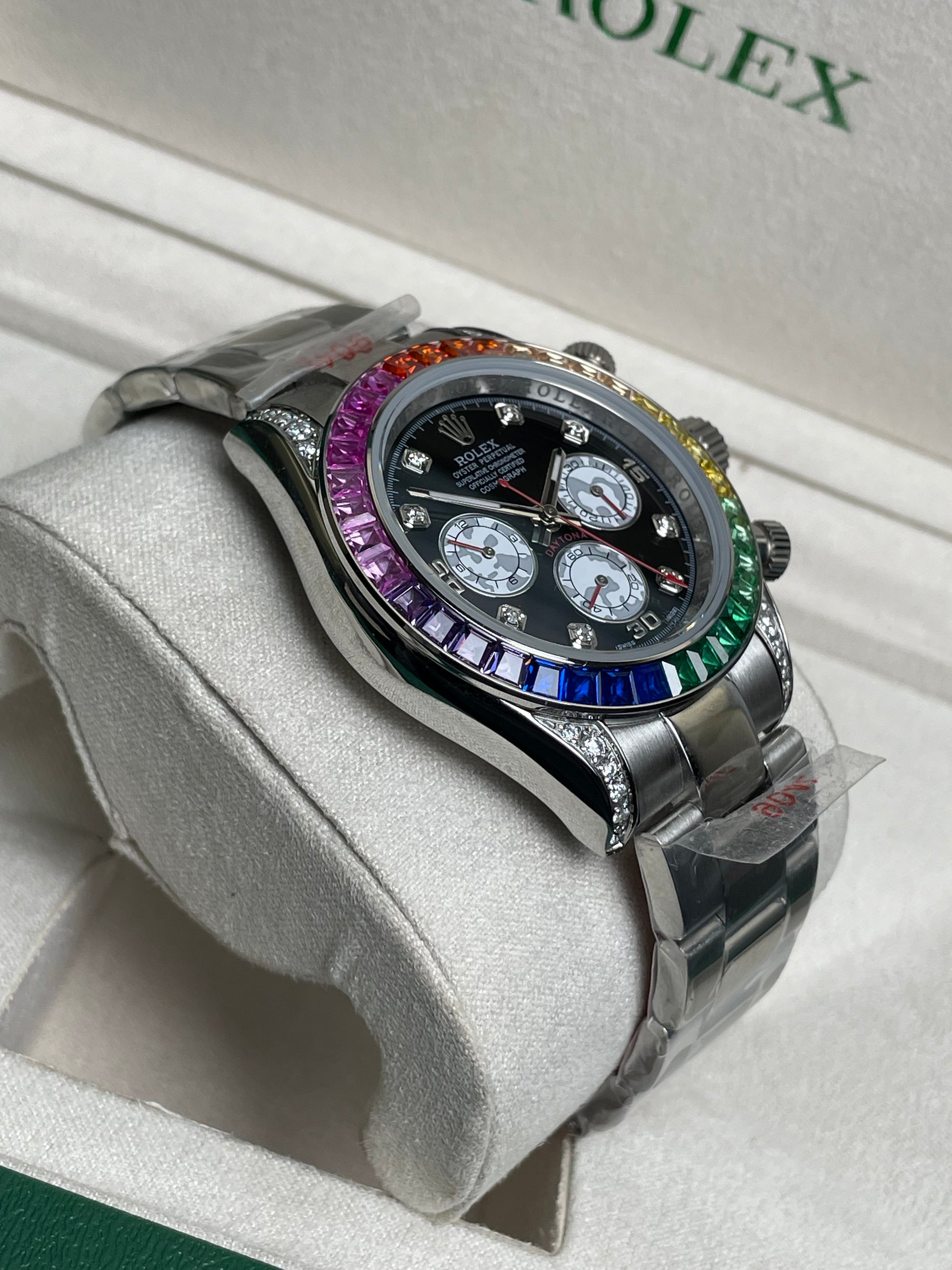 • Model: Rolex Cosmograph Daytona "Rainbow" ( Gold Colour Finish).