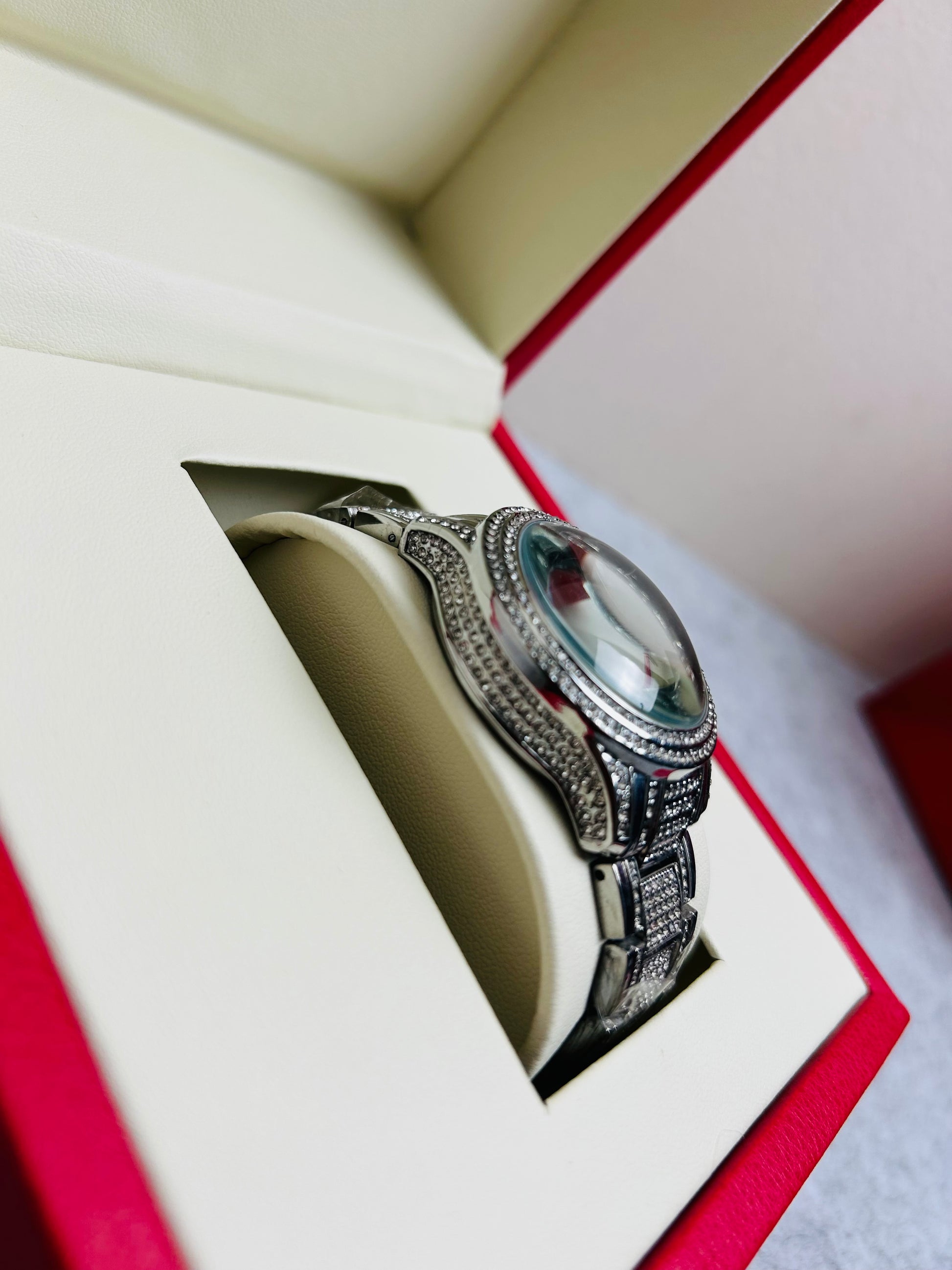 "অসাধারণ স্টাইল ও ঝলমলে গ্ল্যামার – এই ফুল স্টোন ঘড়িটি তৈরি হয়েছে সম্পূর্ণ প্রিমিয়াম ক্রিস্টাল দিয়ে। প্রতিটি কোণ থেকে আলোয় ঝলমল করবে এর রাজকীয় লুক, যা আপনার ফ্যাশনকে করবে আরও আলাদা ও চোখে পড়ার মতো। পার্টি, গিফট বা কালেকশন – যেকোনো উপলক্ষেই এটি হবে আপনার পারফেক্ট চয়েস।"